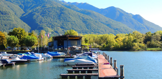 Il cantiere si trova sulle rive svizzere del Lago Maggiore, nella foce del fiume Verzasca, con accesso diretto al lago ed è munito di stazione di benzina, posti barca esterni ed interni e officina per lavori meccanici e lavori di falegnameria.