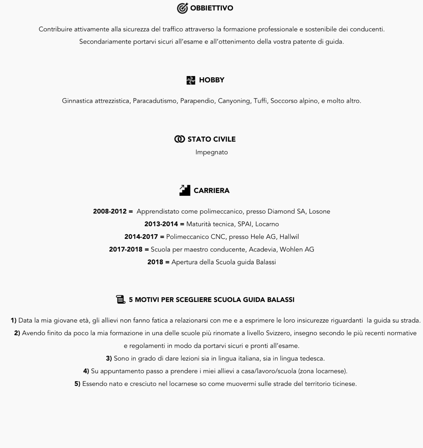 2) Avendo finito da poco la mia formazione in una delle scuole più rinomate a livello Svizzero, insegno secondo le più recenti normative e regolamenti in modo da portarvi sicuri e pronti all’esame.